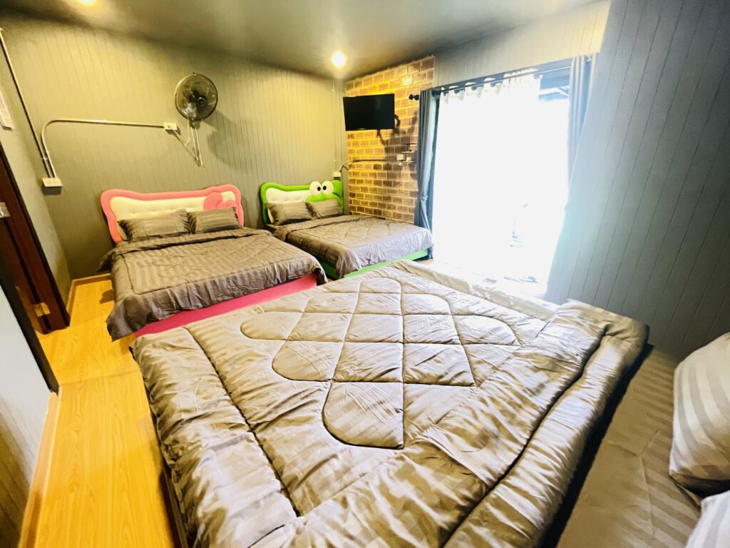 เตียงขนาด 6 ฟุต: เตียงนอนขนาดใหญ่ 3 เตียง นุ่มสบาย รองรับการนอนหลับอย่างมีคุณภาพ เหมาะสำหรับ 6 ท่าน ไม่ว่าจะเป็นคู่รักหรือเพื่อนที่ต้องการความสะดวกสบายและพื้นที่ในการพักผ่อน !
